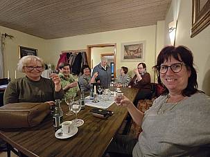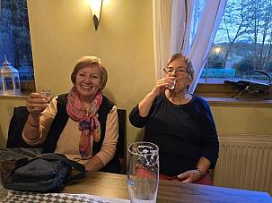 Bei bestem Wetter - nicht zu warm und nicht zu kalt - und dazu Sonnenschein wurde über den Gänsewald und die Mariengrotte gewandert. Im Restaurant angekommen warteten schon die Frauen, die nicht mitlaufen konnten oder wollten. Der Lärmpegel an den Tischen zeugte von hohem Gesprächsbedarf. Der Rückweg wurde wieder zu Fuß oder mit dem Auto angegangen.