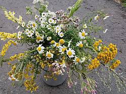 Am Sonntagmorgen des 28. Juli´s brach eine fröhliche Runde zum Kräuterspaziergang auf, um Kräuterbuschen für Maria Himmelfahrt zu suchen und zu binden. Es wurde nicht nur der Brauch und seine Hintergründe von Daniela Börner erklärt, sondern von Annelie Kreß auch allerlei Nützliches und Interessantes zu den einzelnen Kräutern berichtet.